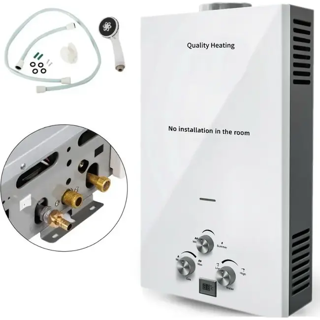 De geiser is gemakkelijk te installeren en te bedienen en zal het water onmiddellijk verwarmen.
